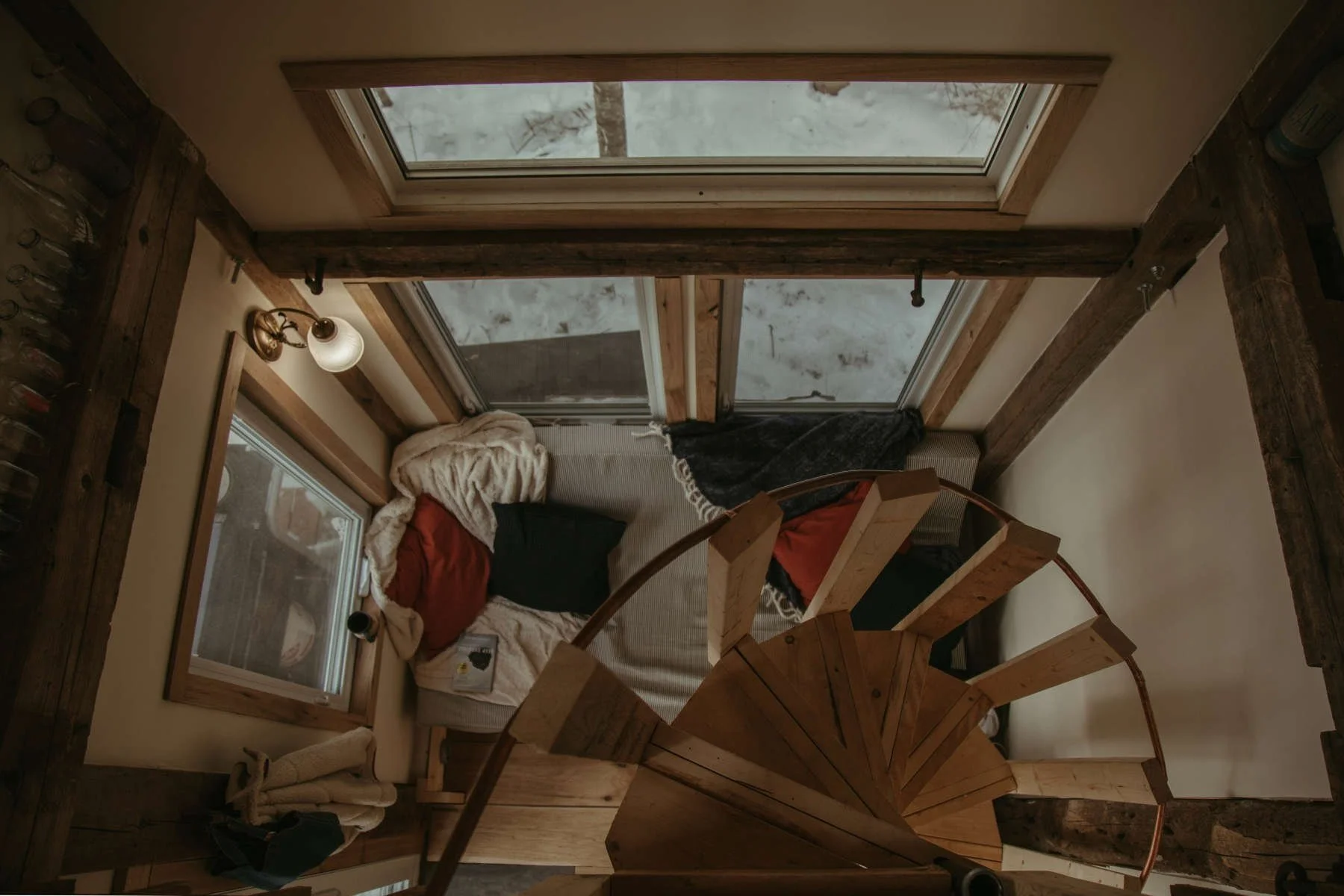 Built with 1850’s timbers and modern amenities. New efficient fireplace, windows, off grid lighting . . . Equipped with everything you need for a comfortable stay.